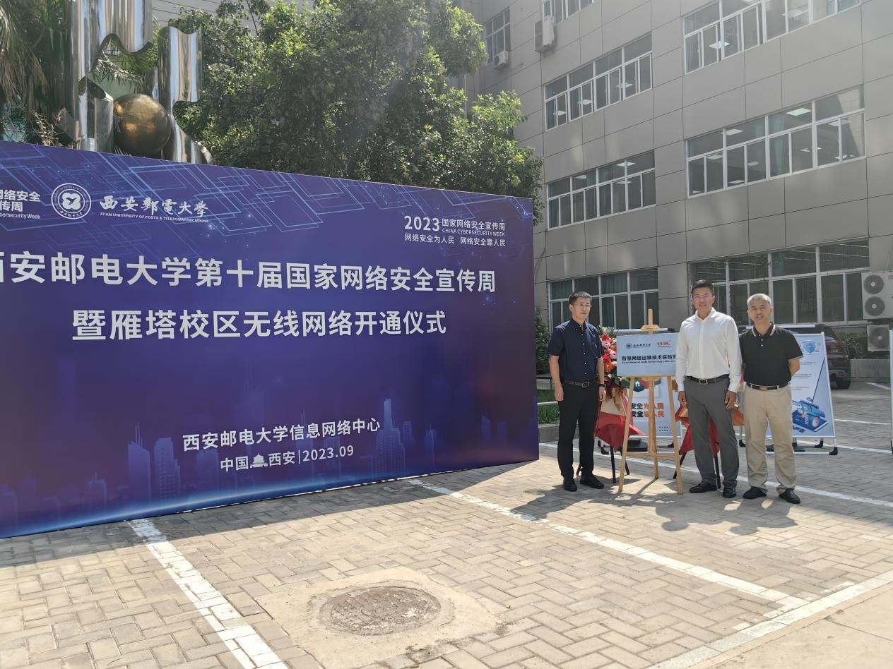 9月15日上午,我校在雁塔校区举办第十届国家网络安全宣传周专题活动暨雁塔校区无线网络开通仪式。信息网络中心主任杨武军致辞,陕西北佳信息技术有限责任公司总经理郝大中,新华三集团陕西分公司副总经理杨海涛,党委宣传部、财务处、国有资产管理处、保卫处、后勤服务产业集团、经济与管理学院、现代邮政学院等部门单位相关负责人和工作人员,以及200余名2023级学生参加仪式。活动由信息网络中心副主任贾勇主持。